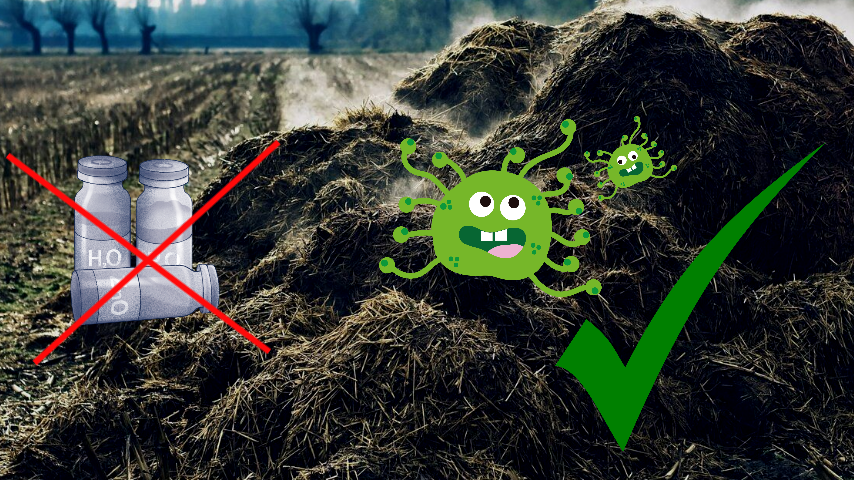 Навоз / помет становится высококачественным удобрением благодаря ЭМ-Технологии