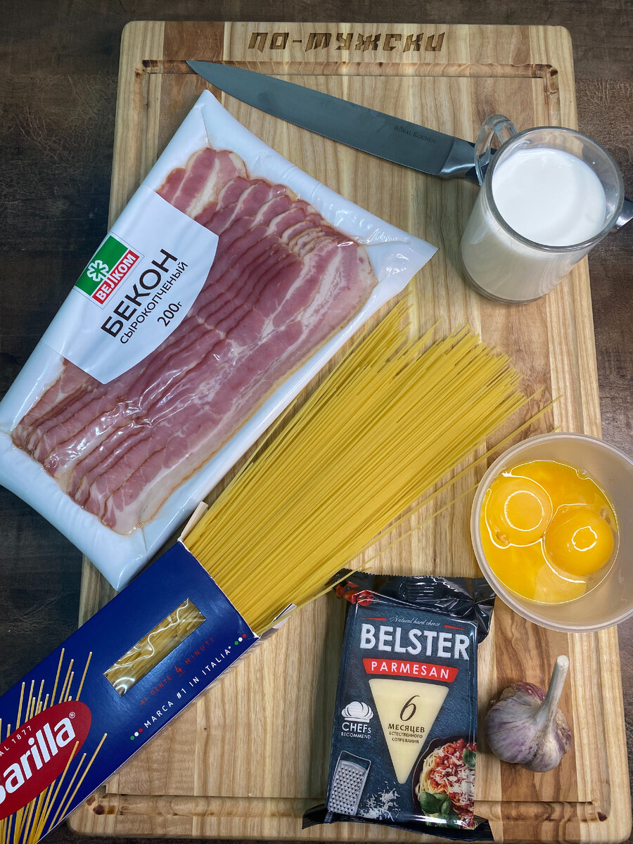 Ингредиенты: Способ приготовления: Бекон нарезать на маленькие ломтики В глубокой миске смешать яичные желтки, сливки, соль, перец и натертый сыр. Отварить макароны в подсоленной воде за 1 минуту до состояния Аль Денте и переложить в дуршлаг, чтобы стекла вода. Выдавить чеснок. Бекон обжарить до золотистой корочки на растительном масле, затем добавить чеснок, перемешать. Влить из миски всю нашу смесь и постоянно помешивать до небольшого загустения. Добавить спагетти и все тщательно перемешать, готовить буквально одну минуту. Выложить готовую пасту на тарелку, натереть пармезан и посыпать кедровыми орешками 😋