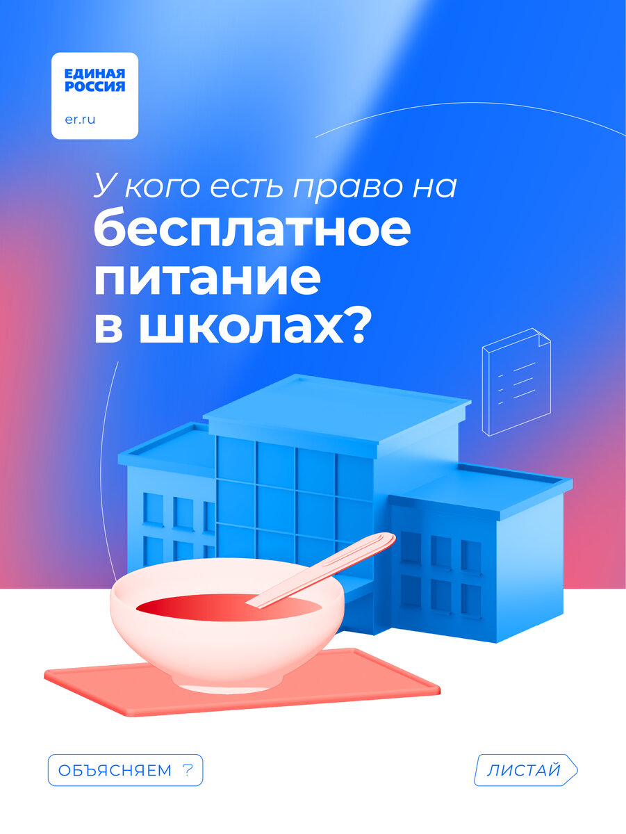 🥗Льготное питание школьников — это бесплатные ежедневные завтраки и обеды. Дополнительные льготы могут вводить и регионы на свое усмотрение. Кто может на них рассчитывать – рассказываем в наших карточках.
