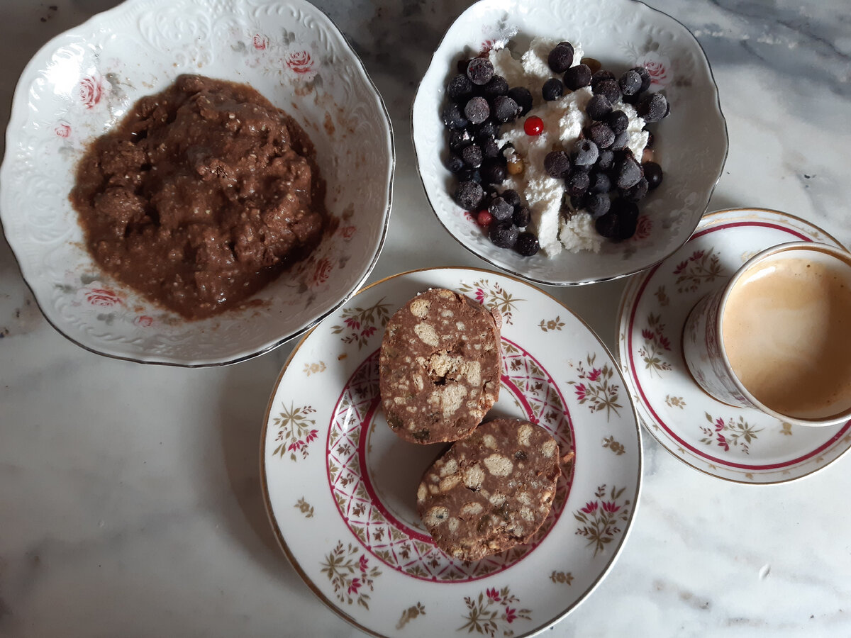 В октябре я начала Экономный марафон. Рассчитываю на два месяца. Многие из вас меня поддержали, так что мы марафоним большой командой💪 О моих запасах и расчете бюджета на месяц ЗДЕСЬ Правила марафона ЗДЕСЬ На завтрак была каша и творог с ягодами. Кашу не варила, оставалось немножко пшенной, немножко гречневой, ели кто что захотел, я себе сделала льняную кашу. К кофе - шоколадная колбаса (из запасов) На обед чечевичный суп куриный и винегрет. Винегрет сделала с зеленым горошком и добавила яблочко. Сделали хумус из отварного нута, ели его с огурцом и лавашом После обеда - десерт: чашечка кофе и булочка с корицей и изюмом На ужин тоже почти все было готово, только сварила картошку для своих (сама не ела). Так что у меня тушеные желудочки и овощное рагу. Рецепты из сегодняшнего меню: Из запасов сегодня примерно всё! 👌