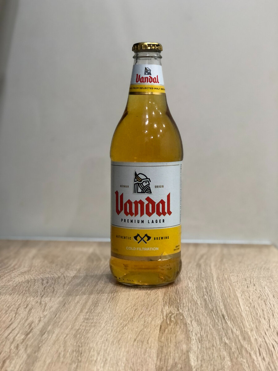 Совсем недавно Московская Пивоваренная Компания анонсировала выход нового пива Vandal. В соцсетях это сопровождалось фото, на котором прозрачная стеклянная бутылка стоит на желтом, практически солнечном фоне. Зная, в последнее время любовь крупных пивоварен к легкому пиву, именно таким оно изначально и представлялось. Но на деле вышло несколько иначе. Хотя, надо отметить, не только меня подобное пиво и ее презентация навели на мысли о легком лагерке, практически каждый второй отзыв об этом пиве - это упоминания Corona Extra и Miller. Но есть два момента, которые эти аналогии делают несколько беспочвенными. Во-первых, этикетка гласит, что внутри нас ожидает пиво "немецкого происхождения", видимо, имелось ввиду некая рецептура. Во-вторых, крепость данного пива 5,5%. На минуточку это как у Хамовники Мюнхенское. Любителей корона-миллеровской водицы это могло только отпугнуть, но об этом чуть позже. Vandal Premium Lager — лагер с приятным сбалансированным вкусом и запоминающимся дизайном