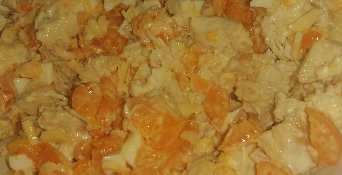 Салат с курицей и мандарином. Рецепт салата на Новый год 2024.