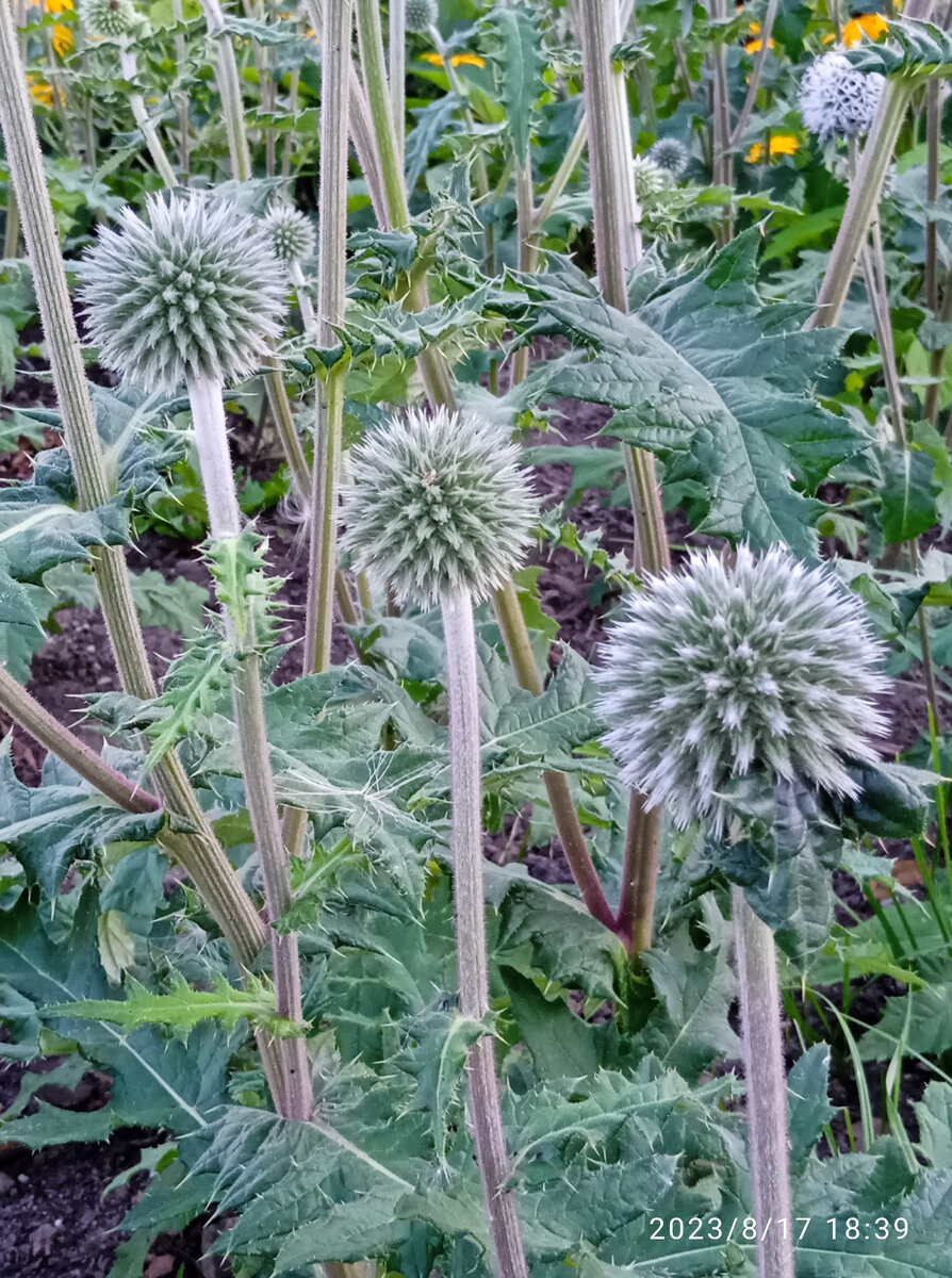 Привет! Подборка городских растений: *** Мордо́вник, Эхи́нопс (лат. Echínops) — род многолетних, реже однолетних, колючих травянистых растений семейства Астровые, или Сложноцветные (Asteraceae). Латинское название Echínops происходит от греческого слова echinos — "ёж" и ops — "облик". Из ботанического словаря Анненкова Н. И.: Echinops L. Composit. VI. 522. Мордовникъ (Кауфм.) Нога львина трава (Кондр.) Осотъ ежовый или Ежова Нога трава (Кондр.) Ежовникъ, Мордвинникъ, Перестрѣлъ, Татарникъ. Пол. Przegorzan, Oset kulowv. Jeżowiec, Jeźonóg. — Чешск. Bělotrn. — Сербск. Glavoč, Belotèrn. — Луз. Jeżowc, Kulowc. — Нѣм. Kugeldistel, Binnserknopf. — Франц. Boulette, Echinope. — Англ. Globe Thistle. Точных данных о происхождении названия "мордовник" я не нашла. А ежовником, татарником сейчас называют другие растения. Английское название "globe thistles" и немецкое "Kugeldisteln" можно перевести: "шаровидный чертополох". *** Мордовник упомянут Диоскоридом (1 век н.э.) в его труде "De materia
