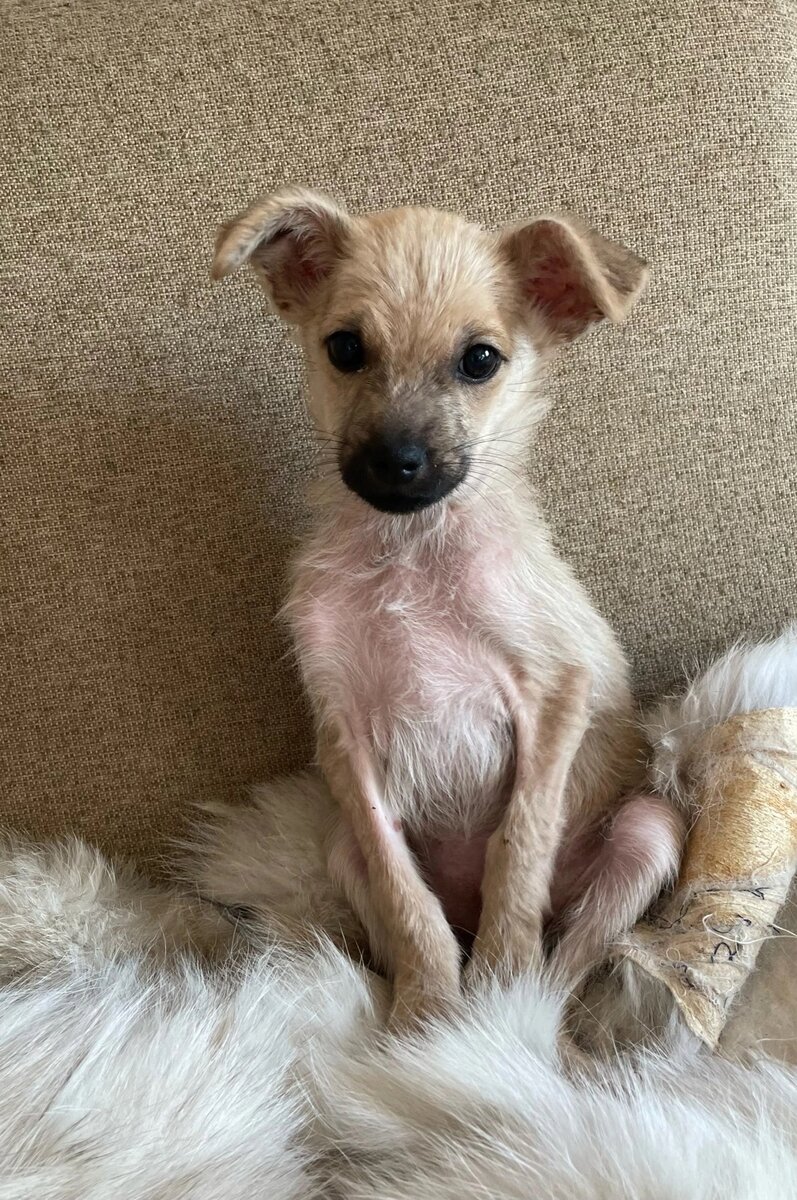 Воронеж, Москва, Питер и другие города! Малышку Умку нашли на улице, где она сидела и плакала. И мы сами чуть не заплакали вместе с нею😥 Она была вся в коростах от подкожного клеща, мучилась от невыносимого зуда, видимо поэтому и выбросили на улицу такую крошку. Размером Умка меньше той-терьера, хотя ей сейчас уже около 2,5 - 3-х месяцев. Сейчас Умка находится на передержке, демодекоз фактически вылечен препаратом Бравекто, было бы очень хорошо купать её сейчас шампунем с хлоргексидином, чтобы поскорее прошла вся краснота на коже и быстрее отросла новая шёрстка, но в условиях передержки это делать очень сложно(