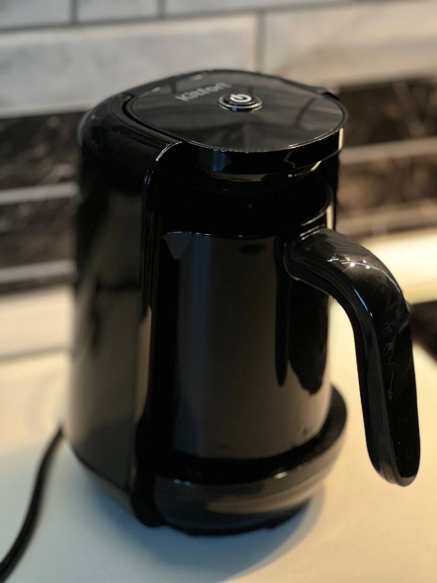 Первый раз я познакомилась с этим чудо агрегатом, у знакомой, и вид этой турки меня прям привлек! плюсов много, начнем по порядку. Выполнена турка в двух цветах – чёрная и белая. Я выбрала черную, но на ней видны все пальчики, которыми вы трогаете эту прекрасную турку. Стоимость от 1990 рублей, в зависимости от маркетплейсов, также можете приобрести товар на официальном сайте KITFORT. Турка выполнена из высококачественной нержавеющей стали, что обеспечивает ее долговечность и стойкость к внешним воздействиям. Одной из главных особенностей этой электрической турки является автоматическая система контроля температуры. Благодаря этому, кофе всегда будет приготовлен с идеальной температурой и сохранит свой насыщенный вкус и аромат. Также эту турку отличает простота использования. Устройство оснащено специальной кнопкой, которая позволяет включать и выключать турку, а также контролировать процесс варки. Благодаря интуитивно понятному интерфейсу, каждый сможет легко освоить работу с этой эл