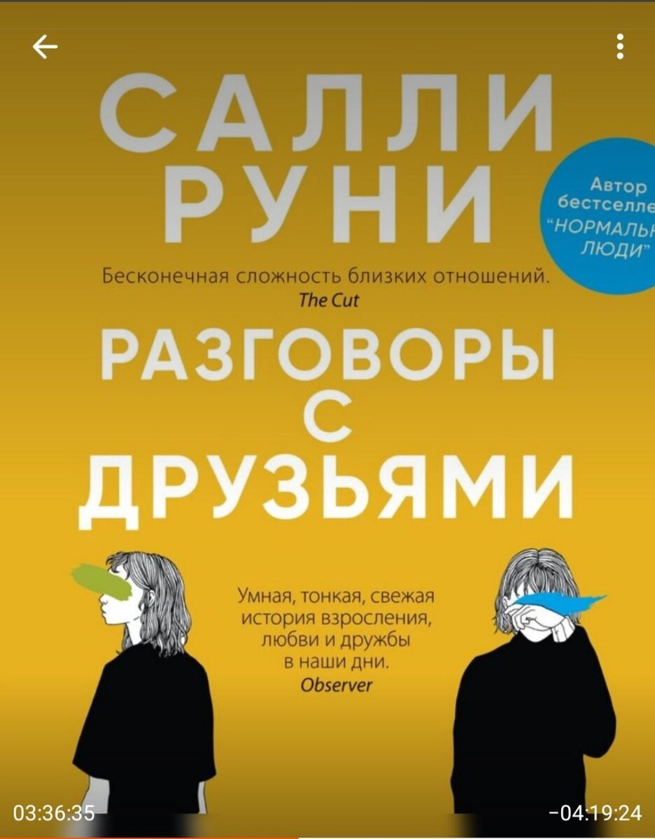 Это вторая книга ирландки Салли Руни, с которой я познакомилась. И я все не могу разобраться со своим отношением к ее творчеству. Кажется, что сюжета как такового или крутых поворотов в её книгах нет. Есть просто течение жизни. В этой книге о двадцатиоднолетней студентке, у неё есть близкая подруга Бобби (и заодно её бывшая девушка), она пишет стихи и выступает с ними вместе с Бобби на поэтических слэмах. На одном таком вечере они знакомятся с женатой парой постарше: писательницей и актёром, и постепенно видятся с ними все чаще, проводят все больше времени вместе за разговорами. Разговорами с друзьями. За бокалом вина, как правило. Больше о сюжете не расскажу, ибо спойлеры. Повествование неспешное, приятное и какое-то понятное и близкое мне. Что примечательно, в книгах Салли Руни даже у школьников есть чёткие политические взгляды и гражданская позиция. При этом в человеческих отношениях они просто люди, спотыкающиеся и ошибающиеся и иногда, на мой взгляд, даже не вполне ментально зд