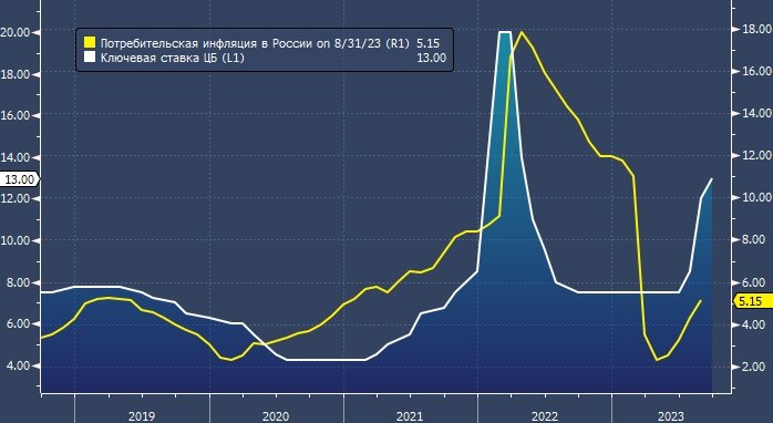 Экономисты прогнозируют дальнейшее повышение ключевой ставки уже в октябре России, вероятно, потребуется поддерживать высокие процентные ставки в течение всего 2024 года, заявил во вторник заместитель председателя Банка России Алексей Заботкин, выступая в верхней палате парламента после того, как рубль снова ослаб более чем на 100 пунктов по отношению к доллару. Заботкин заявил, что денежно-кредитная политика, направленная на снижение инфляции, повысит привлекательность рубля и будет способствовать стабилизации обменного курса. По его словам, ослабление рубля усиливает инфляционные ожидания населения. Экономический советник президента Владимира Путина Максим Орешкин в августе упрекнул центральный банк в падении курса рубля до 101,75 за доллар, обвинив его в мягкой политике, что стало признаком растущего внутреннего раздора. После августовского экстренного повышения центральный банк в сентябре вновь повысил ставки до 13%. Аналитики, опрошенные агентством Reuters, ожидают, что центральны