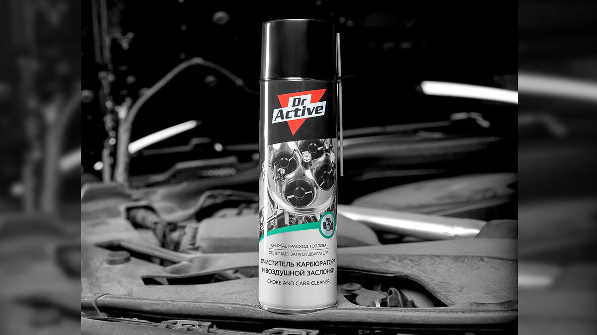 Очиститель карбюратора и воздушной заслонки Dr.Active выпускается в виде аэрозоля емкостью 650 миллилитров. Его распылительная головка формирует факел, который с одной стороны позволяет за один проход покрыть составом большую площадь поверхности, а с другой – сбивать напором загрязнения с поверхности. Это очень важно, так как дроссельные узлы могут иметь специальное покрытие, которое часто повреждается при использовании жестких щеток или кистей, которыми механическим способом удаляют неподдающиеся растворителю отложения.