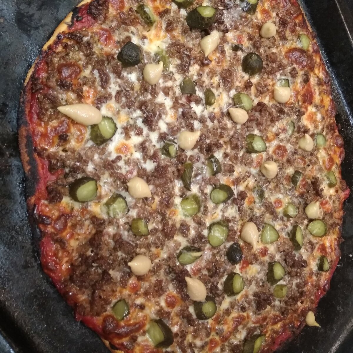 - Для начинки: фарш говяжий 450г, огурчики маринованные 150г, моцарелла с пониженным содержанием влаги 450г, щепотка орегано, базилика либо итальянских трав, несколько капель горчицы, пармезан или другой яркий сыр (тертый, для посыпки).