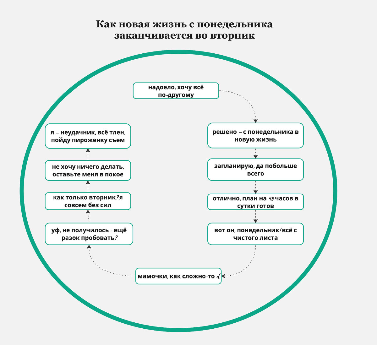 Хорошо составленный план помогает держать фокус и спокойно двигаться к намеченным целям. Но бывает так, что план, составленный в понедельник, перестаёт работать уже во вторник, а в голове крутятся мысли как на картинке. Знакомо? Вот, что делать, если обнаружили себя в таком круге: План — это не то, что высечено в камне. Это лишь инструмент, который помогает построить маршрут к цели. На пути могут возникать разные неожиданности: ямы, пробки, перекрытия дороги. Но руль управления в ваших руках, а опция «Маршрут перестроен» доступна всегда. Главное — вдумчиво корректировать планы и продолжать движение туда, куда зовёт сердце. Отличного вторника, дорогие!