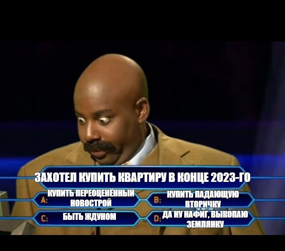 Основная моя личная обязанность написания этой статьи была в том, чтобы обозначить тренды, наиболее вероятные, исходя из предпосылок сегодняшнего дня. Но посыл её я сознательно свожу к другому - рынок пришёл в такое состояние, что на 100% безопасное поведение для покупателя сейчас обозначить просто невозможно. А среди вариантов, предложенных герою картинки в начале статьи, выкопать землянку - наиболее спокойный. Потому принимайте решение, не исходя из чьих-либо рекомендаций или советов аналитиков в интернете, а из того, в какой вариант развития событий верите сами, и с какими рисками лично Вы в вашей ситуации сможете справиться.
