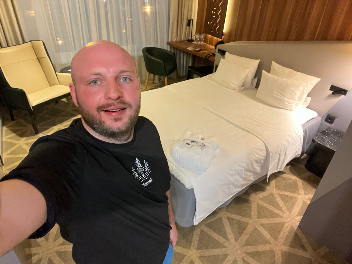 Вообще, удивительно, как звезду мирового футбола занесло в Саранск. Да и непривычно использовать в одном предложении слова «Мордовия» и «Криштиану Роналду». Но все дело в том, что в 2018 году в России был Чемпионат мира по футболу, и Саранск был одним из городов, которые принимали игры мундиаля. К этому событию построили и стадион, и аэропорт, и гостиницу Mercurе, где остановилась сборная Португалии с их лидером, а сейчас здесь живу я. Криштиану, по словам работников отеля, остановился в номере 607. Это люкс. Но матч для португальцев сложился не очень удачно, они скатали ничейку с Ираном, а Роналду не забил пенальти. Позже он оправдывался на пресс-конференции, что вокруг отеля было шумно, и он не выспался. Я же живу в обычном номере, но он вполне комфортный. И очень стильный, как и весь отель. Могу сказать, что здание отеля выигрышно выделяется в центре города на фоне остальных построек. Особенно по сравнению с соседней гостинице Саранск, построенной еще в советское время. Так что прож