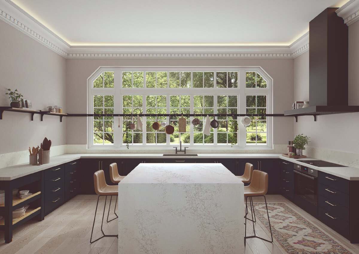 Чтобы действительно создать вневременное пространство, белый цвет является воплощением современного дизайна кухни. Идеально сочетаясь практически с любой планировкой, рисунком и текстурой, белый цвет создает светлое и воздушное пространство. Столешница Caesarstone 5143 White Attica прекрасно отражает этот стиль. Входящая в коллекцию Supernatural, эта поверхность выполнена в свежем белом цвете с темными и светло-серыми прожилками по диагонали, контрастный цвет создает эффектный вид, помогая создать современный стиль.