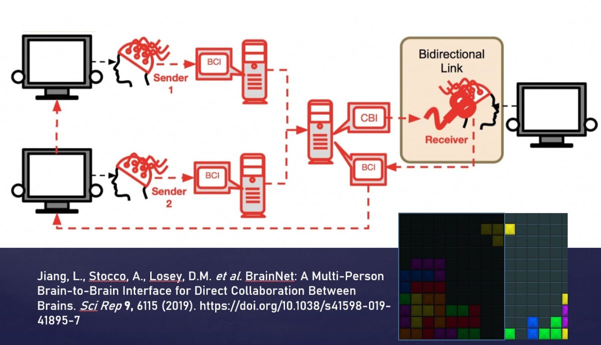 (https://www.ncbi.nlm.nih.gov/pmc/articles/PMC6467884/)BrainNet позволяет получателям научиться доверять отправителю, основываясь исключительно на информации, передаваемой непосредственно в их мозг. Это первый шаг к "социаль