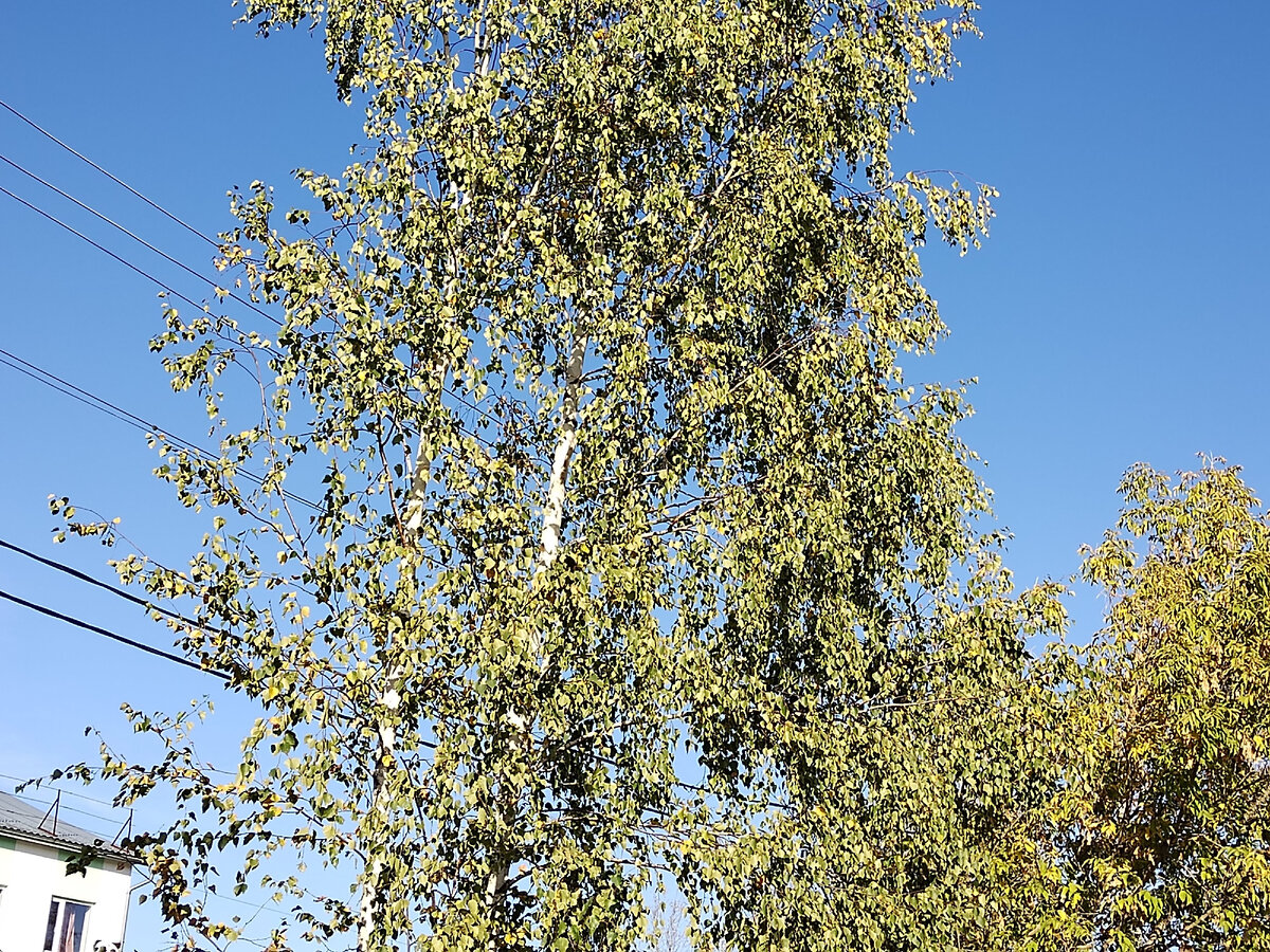 В последний солнечный денёк успела запечатлеть красивый осенний убор деревьев и кустов. Пошла в магазин и решила сделать несколько фотографий осенней листвы. Этой осенью листва на деревьях и кустах долго продержалась зелёная, а сейчас уже больше жёлтой и багряной. А ещё и ягоды шиповника не все оборвали.
