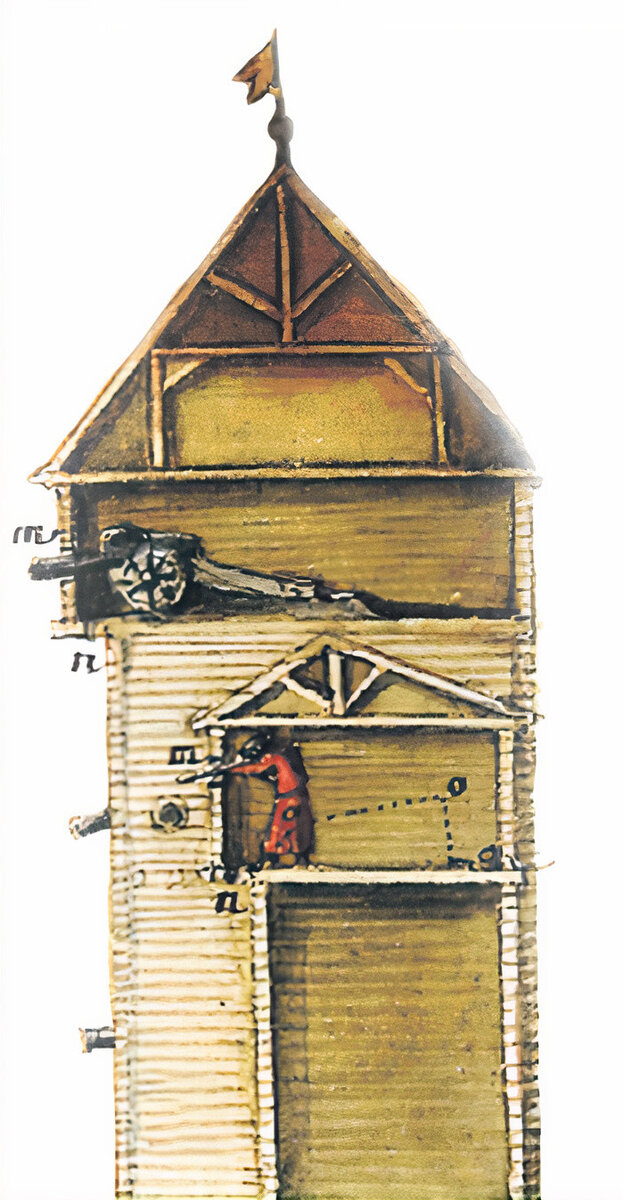 Чертёж башни русской крепости из альбома Э. Пальмквиста (1674 г.)