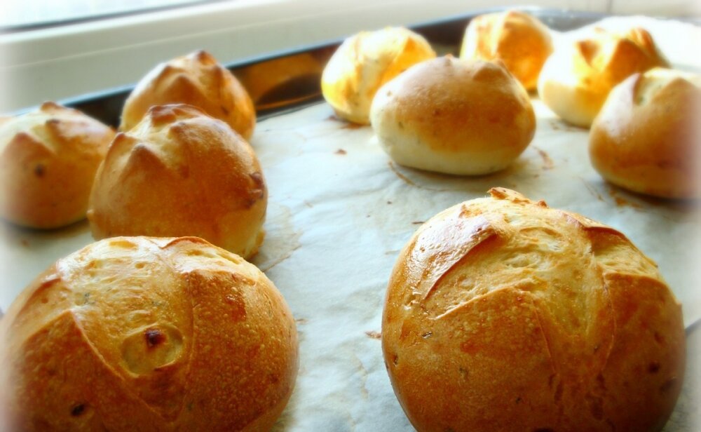 Булочки с луком мягкие, воздушные, с хрустящей корочкой и с луковым ароматом, их хочется скушать сразу горячими! Такие луковые булочки идеально подходят к супам и вторым блюдам или для перекуса. Приготовьте и попробуйте! Ингредиенты на 12 булочек: Мука - +/-500 г Вода тёплая - 300 мл. (t - 38-40 °С) Дрожжи сухие быстродействующие - 7 г (сырых - 20 г) Сахар - 20 г (2 ч. л. с горкой) Соль - 1 ч. л. без горки Масло растительное - 40 мл. Лук - 1 шт. + 2 ст . л. растительного масла 1 Лук мелко нарезать и обжарить в небольшом количестве масла, до слегка золотистого цвета. Выкладываем на сито, чтобы избавиться от лишнего масла, оставляем остывать до комнатной температуры. 2 Приготовить тесто. В стакан налить теплой воды, добавить сахар (всего 20 г. сахара, остальную сладость придаст лук), дрожжи, перемешать. Если не уверены в дрожжах оставьте минут на 15, если жидкость покрылась пузырьками, значит дрожжи хорошие. 3 Просеиваем муку, добавляем соль, перемешиваем. Выливаем дрожжев
