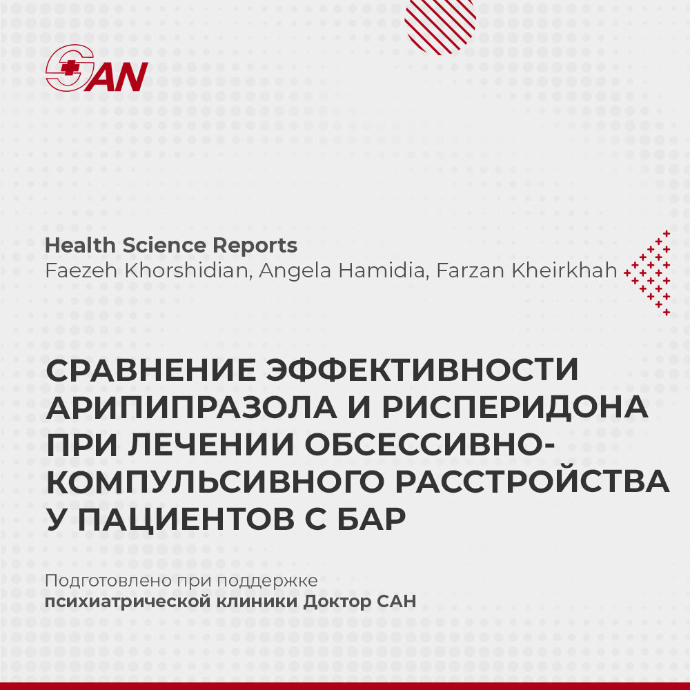 В двойном слепом рандомизированном клиническом испытании сравнивалась безопасность и эффективность рисперидона и арипипразола в качестве дополнительной терапии с вальпроатом натрия при лечении мании, депрессии и ОКР у пациентов с коморбидностью ОКР-БАР. И арипипразол, и рисперидон показали эффективность в качестве дополнительной терапии с вальпроатом натрия при лечении ОКР у пациентов с БАР без каких-либо серьезных и опасных для жизни побочных эффектов. Арипипразол оказался более эффективным по сравнению с рисперидоном. Что касается побочных эффектов, рисперидон вызывал статистически значимое увеличение массы тела, а арипипразол - статистически значимое нарушение сна. Подробнее о лечении ОКР: https://doctorsan.ru/lechenie-okr