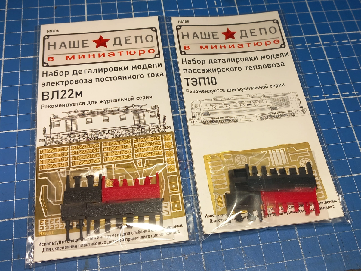 Производитель из Челябинска «Наше депо в миниатюре» анонсировал набор дополнений для моделей из журнальной серии «Наши поезда» от издательства MODIMIO. На этот раз доработать и улучшить предлагается модели тепловоза ТЭП10 и электровоза ВЛ22М.