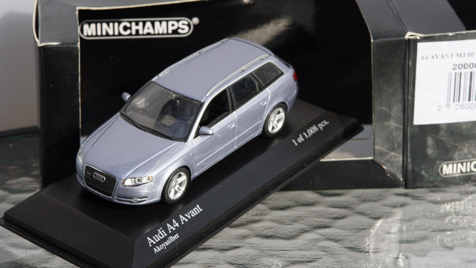 572-574 Audi A4 Avant 2000, Audi A4 Avant 2004 silver, Audi A4 Avant 1999 blue metallic, Minichamps 1:43