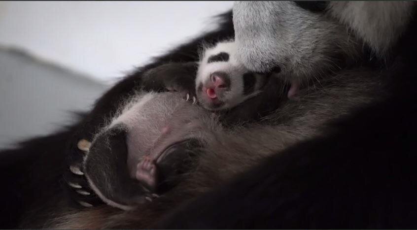Эти удивительные мишки, кажется, показывают нам пример. Не знаю, кто у них главный в семействе, но уверен: они умнее тех, у кого есть родители №1 и №2. У наших мишек всё устроено очень умно и правильно, хотя они никакие курсы не кончали и их этому никто не учил. Обратите внимание: мама Диндин сразу после рождения младенца аккуратно лапками прижала к себе, не подпуская никого. И только когда детёныш немного подрос, разрешила докторам, которым доверяла, осмотреть младенца. Папа Жуи не вмешивается. Он абсолютно спокоен, Словно знает, что Диндин справится. Его очередь поучаствовать в воспитании дочери придёт позже. Пока же Жуи жуёт свой любимый бамбук и спокойно смотрит на ротозеев, которые пришли на него поглядеть, чтобы хоть на время оторваться от катаклизмов, сотрясающих мир людей.