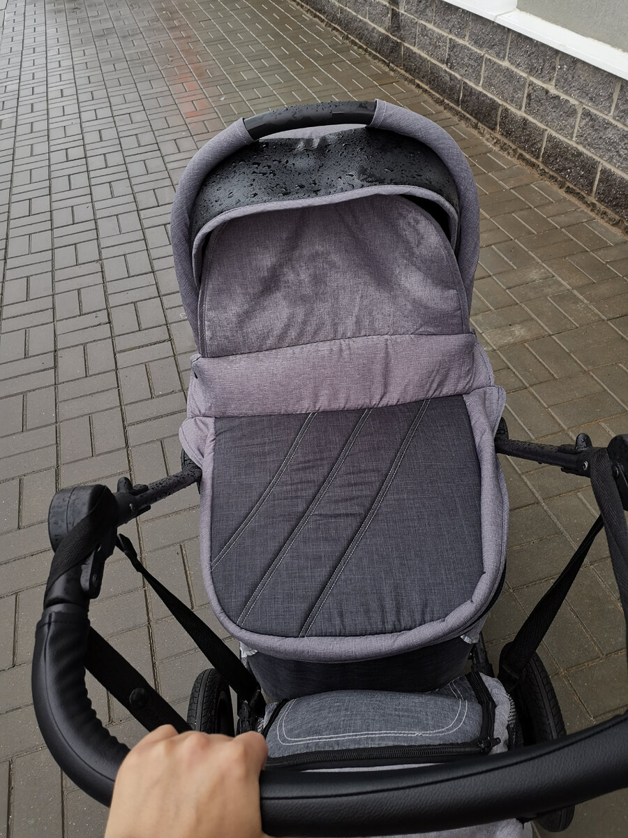 Я на дождь не рассчитывала, пошла в кроссовках, Саша - в куртке и осенних ботинках. Знала бы, что будет дождь, оделись бы по-другому. Плюс, коляску-то я оставила рядом с парковкой, не под крышей. Она вся промокла. Дождевик для коляски я с собой не взяла.
