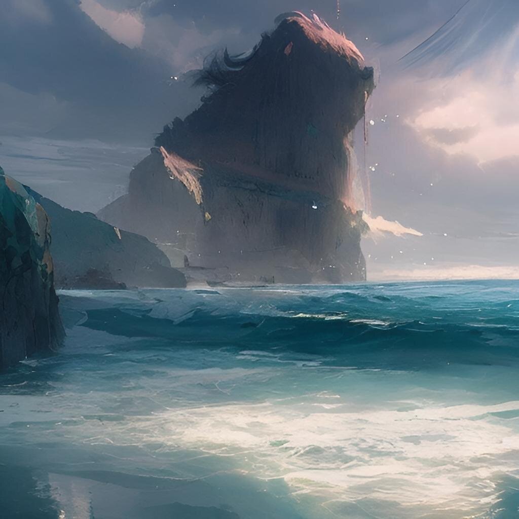 AI generative art ai poem На берегу моря, где волны шумят,