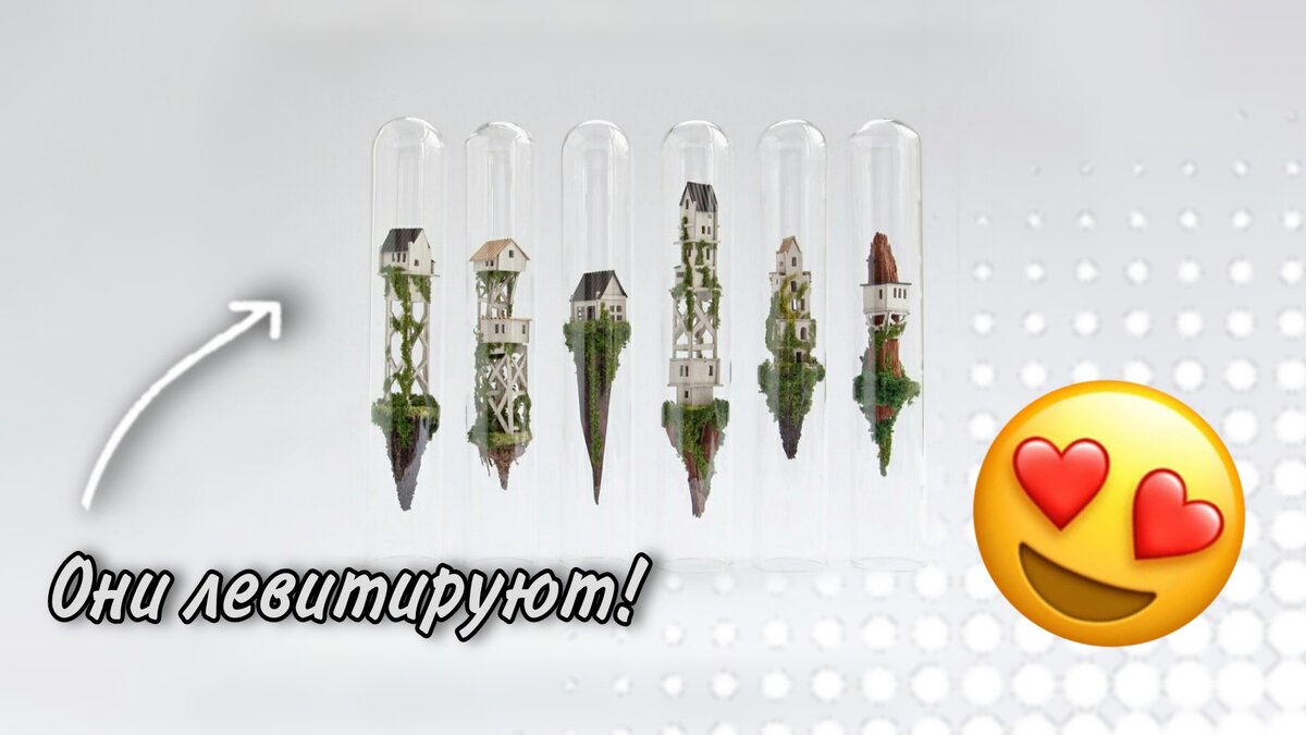 Вы любите миниатюры в бутылках? Я -да! Глаза видят, а мозг не понимает, как мастерам удается заключить в стеклянные ёмкости кораблики, дома, растения и всевозможных персонажей? Это выглядит как настоящее волшебство! Я и сама пробовала делать композиции в малюсеньких баночках, и с полной ответственностью могу заявить, что это очень непростое и кропотливое дело! И сегодня я хочу познакомить вас с художницей, которая тоже создаёт свои микроскопические миры в замкнутых пространствах. Внутри стеклянных пробирок и деревянных рамок дизайнера из Амстердама Розы де Йонг (Rosa de Jong) подвешены миниатюрные домики, как будто вырастающие из скал или парящие на островках земли. Дома на сваях, палатки и высокие лестницы создают идиллическую среду, окружённую искусственным мхом, крохотными деревьями и суровым горным рельефом. Благодаря системе нитей очаровательные миниатюры кажутся парящими в свободном пространстве. Миниатюры Роза старается создавать из максимально природных компонентов: кусочк