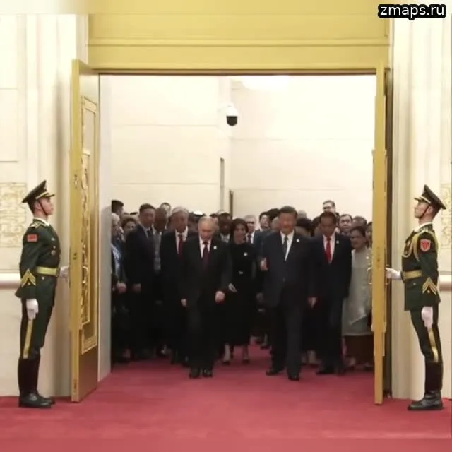 Напомню, что именно Путин и Си Цзиньпин (причем нарочито одновременно) вошли в зал для приветственного банкета, а за ними следовали остальные гости. И не надо думать, что это вышло случайно. На видео прекрасно видно, как именно такой "заход" в зал планировался.