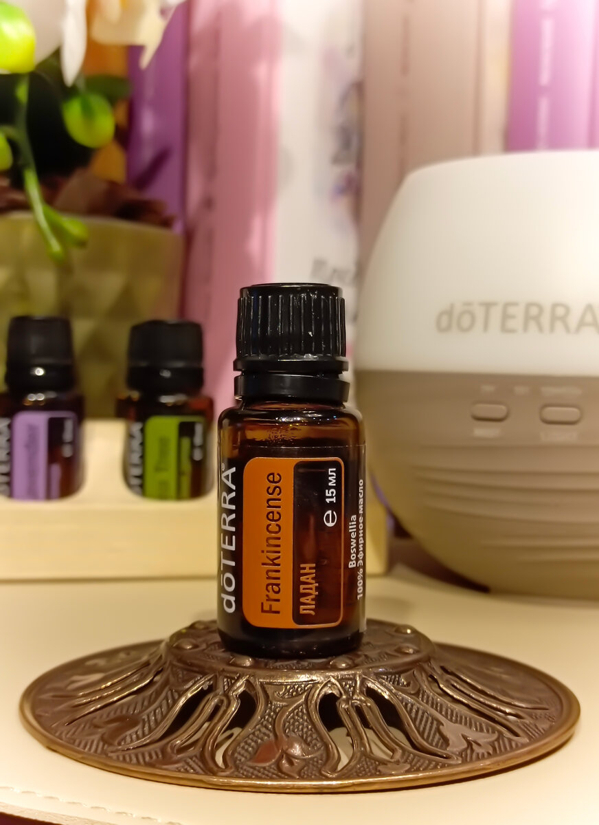 Описание: Достоинства: • 100% чистое эфирное масло стандарта CPTG®. • Поддерживает здоровый клеточный метаболизм. • Способствует расслаблению. • Уменьшает дефекты кожи, омолаживает. • Стимулирует и укрепляет иммунитет. • Обладает противовирусным, антимикробным свойствами. • Оказывает противовоспалительное, спазмолитическое и и противоопухолевое действия. • Является антидепрессантом. Ингаляционное применение: • Для поддержки нервной системы и восстановления равновесия распылять 3-4 капли в день в диффузоре. Наружное применение: • Для разогревающего и успокаивающего действия после долгого трудового дня нанести 2-3 капли масла ладана на руки и помассировать кисти. • Помогает уменьшить проблемы (дефекты) кожи. Наносить ежедневно от одной и более капель (до 8 капель) в зависимости от размера пораженной площади. • Для омолаживающего действия наносить 2-3 капли масла на кожу лица, шеи и декольте. При повышенной чувствительности кожи 1-2 капли масла разбав