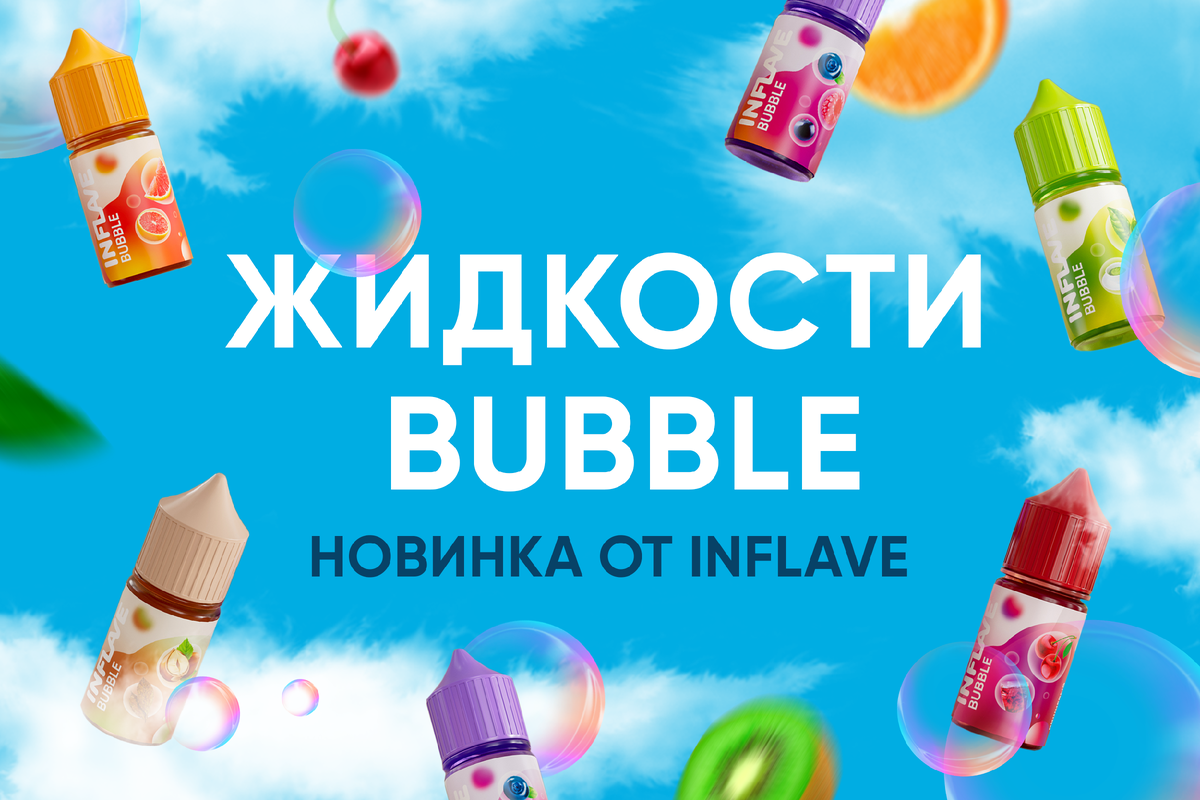 Друзья, как и обещал, расскажу о новой линейке жидкостей BUBBLE от Inflave. Этот запуск – качественно новый опыт для бренда. До августа 2023 года они выпускали только одноразовые электронные сигареты с разным числом затяжек. Мы их с вами уже пробовали. Инфлейв очень неплохо справились! Стартовали громко, выпустив широкую линейку из 30-ти разнообразных вкусов. От классики до самых необычных, вроде «Жасмин-малина». Но об этом подробнее расскажу чуть ниже. Поговорим о тех жидкостях, что уже попробовал и успел составить мнение. Посмотрим, что говорит производитель у себя в Телеграмм: BUBBLE – это высококачественные жидкости, созданные для постоянного и длительного использования. Каждая жидкость из коллекции имеет насыщенный и отменный аромат, точно повторяющий вкус представленных сочетаний. Включает ягодные и фруктовые ароматы в соло исполнении, оригинальные и необычные миксы вкусов, а также идеально переданные напитки и коктейли. Я приобрёл для тестирования 11 вкусов из линейки BUBBLE: Че