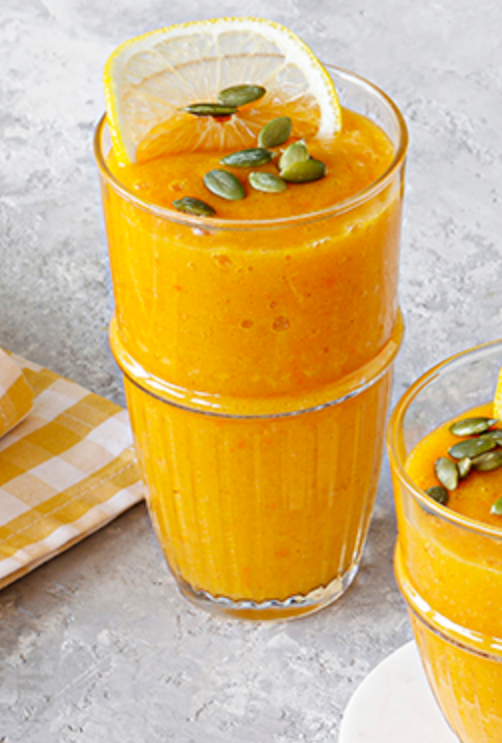 В чашу блендера к хурме выложим тыквенное пюре, добавим апел