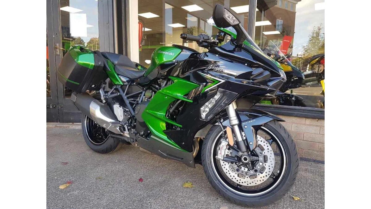 Подборку супербайков на Авто.ру открывает мотоцикл, имеющий опосредованное отношение к спорту и треку. Изобилующая индексами модель Ninja H2 SX SE относится к классу «туристов» и предлагает два места, почти автомобильный список оснащения и уровень комфорта, до которого сложно дотянуться большинству одноклассников.
