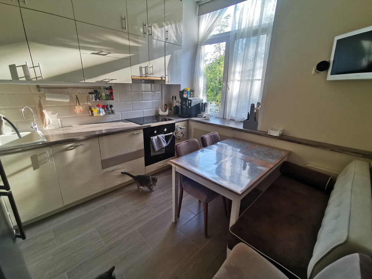 Кухня комфортного, но не очень большого размера - 10 квадратов.
