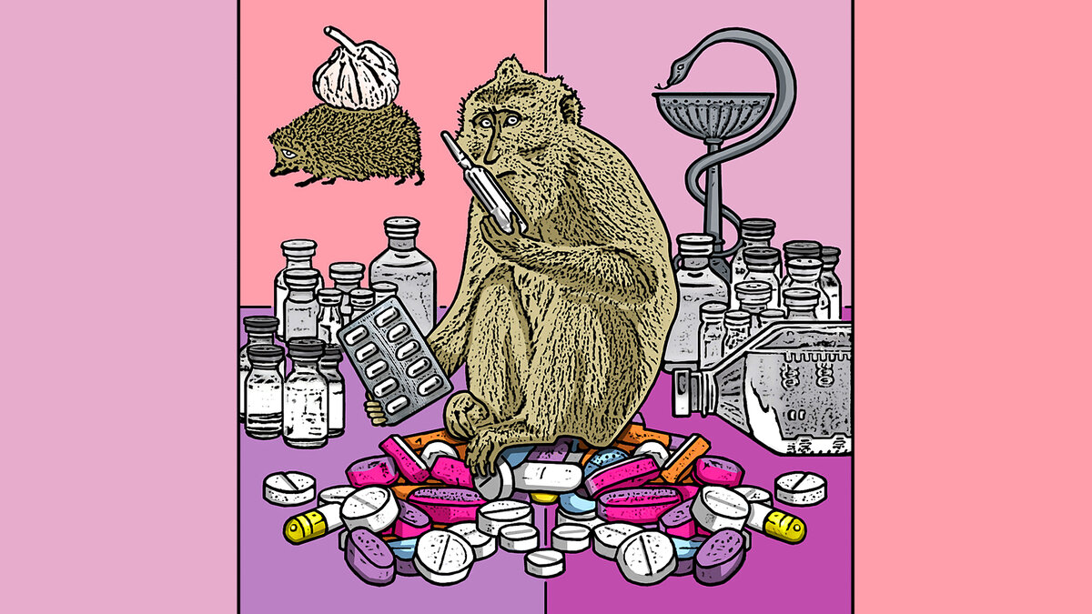 (по мотивам басни И. А. Крылова «Обезьяна») ᅠ ᅠ Как хочешь ты лечись; Но приобресть здоровие не льстись, Коль ешь горстями разные лекарства, Не жди от них добра, одни мытарства. ᅠ ᅠ Мартышка, пялясь в телек свой, И днем, и ночью на экран дивилась, Сколько рекламы красочной, цветной, Потоком на нее катилось. (Ну, а она была внушаемой такой!) И в основном её рассудок поражало, Сколько в миру лекарств существовало! Несметно множество её в восторг приводит. Железного здоровья, как не пожелать. У бедной, с головою что-то происходит, И начала она таблетки пачками скупать! Мартышка вздумала лечиться, Но от чего, не потрудилась объясниться. Нельзя сказать, чтобы она недомогала, Или частенько без причин хворала. Ее здоровье, резвость, прыть и стать, Можно любому было пожелать! Но только вот теперь у ней хлопот - Полней снадобьями набить свой рот! Одно - от головокруженья, Второе - от венозного давленья, А третье, чтобы почки не болели, Четвертое, чтоб кости не хрустели, За этим всем, ну как не