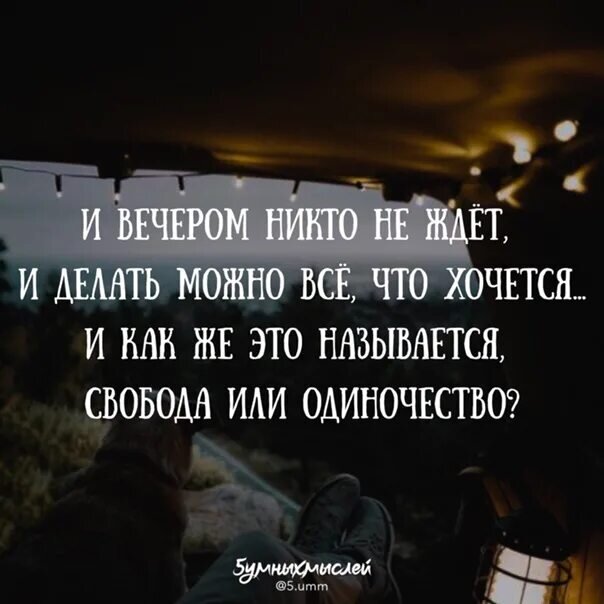 Немного о психологии, философии, и обо мне лично... Каждый действительно выбирает сам. И тут главное не ошибиться в своем выборе! По сути, свобода и одиночество очень близки. Вот только взгляд на них у самого обладателя этого дара, может быть абсолютно разным. И именно от этого выбора очень многое и зависит: Расценивая свою свободу как одиночество, человек стремится быстрее восполнить этот пробел. Он впадает в депрессию, пытаясь найти хоть кого-то, кто согласится быть рядом. При этом на всё остальное он старается закрывать глаза. Главная его цель - скорее избежать того самого одиночества! Так-же точно ошибался и я. Вместо того, чтобы разобраться в себе, развивать скрытые таланты и возможности, которые как раз таки и требовали свободы и тишины, я терял нервы и время, пытаясь быть хоть с кем-то, лишь бы не оставаться одному. И даже прекрасно понимая, что в чьем-то присутствии я не способен ни заняться саморазвитием, ни самореализацией, ни творчеством, ни даже написанием более-менее чит