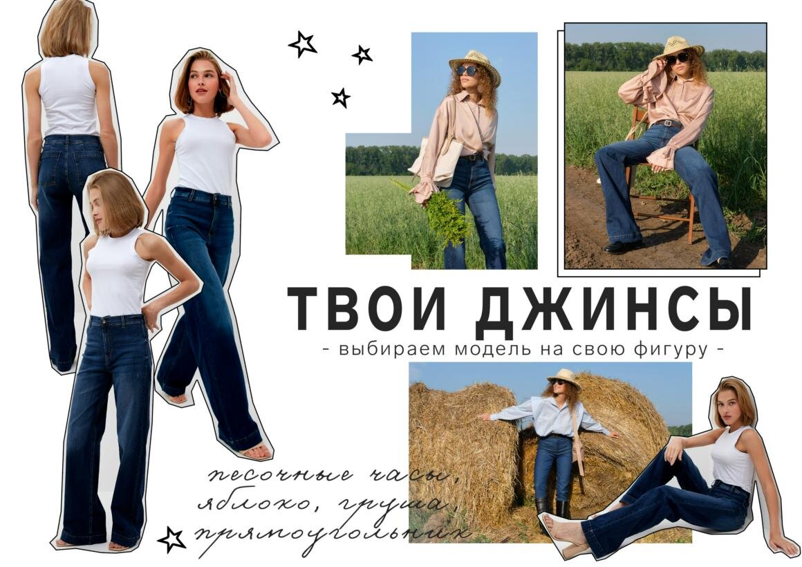 Многих девушек интересует, какие джинсы подойдут под их тип фигуры. Правильно подобранный фасон позволит создать гармоничный и пропорциональный силуэт. Как подчеркнуть достоинства и скрыть недостатки — узнаете из этой статьи. Яблоко Особенности фигуры Широкие плечи, узкие бёдра, стройные ноги, талия слабо выражена. Задача Скорректировать объём в области живота, визуально сделать бёдра шире, а талию — уже. Какие джинсы выбрать Отдавайте предпочтение моделям со средней посадкой и объёмным верхом. Также подойдут расклёшенные и прямые джинсы — они подчеркнут бёдра. Хорошо, если низ будет светлее, чем верх. Это поможет уравновесить пропорции тела. Фото 1. Брюки женские джинсовые MINAKU