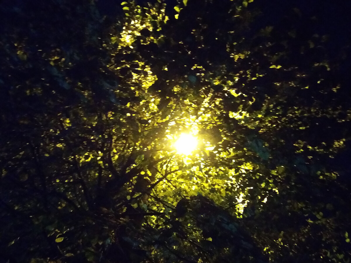 В парке остро и пряно пахло опавшей листвой и влагой, шуршал ветер в голых ветках, перебирал оставшиеся ещё кое-где листья. В жёлтом, масляном свете фонарей резные и яркие листья казались сказочными. Туман окутывал их размытой, таинственной пеленой. Как на открытке или рисунке нейросети.