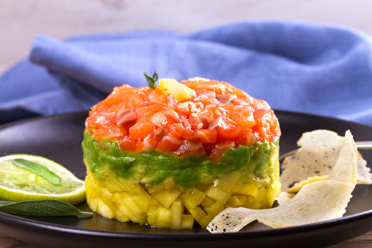 Тропический семга-тартар с манго и лаймом - это изысканное блюдо, которое сочетает в себе свежесть тропических фруктов и нежности морской рыбы. Готовьте этот рецепт, чтобы порадовать себя и ваших гостей яркими вкусами и неповторимым ароматом. Время приготовления составляет около 20-30 минут, а сложность - средняя. Ингредиенты: Инструкции: Наслаждайтесь этим свежим и ароматным блюдом! Тропический семга-тартар с манго и лаймом - это идеальное блюдо для ценителей морепродуктов и экзотических вкусов. Попробуйте его на летнем пикнике или в качестве легкой закуски на вечеринке, и вы точно полюбите эту яркую комбинацию вкусов. Интересные факты о лайме: Лаймы - это не только вкусный и ароматный фрукт, но и полезный и универсальный ингредиент для кулинарии и здоровья. Приятного аппетита! Вам также может понравиться: Котлеты по министерски из куриного филе Рецепт классических драников Топ-5 кулинарных лайфхаков Новая неделя – новое меню! 60 блюд на выбор. Успейте заказать всё самое вкусное в Шеф