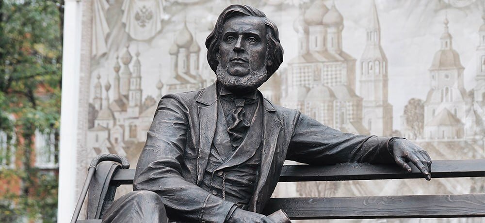 Фактически на День учителя в Ярославле был открыт новый памятник, расположенный в непосредственной близости от педагогического университета на Котросльной набережной. Место выбрано совершенно не случайно, да и объект, как говорится, с умыслом. Дело в том, что памятник изображает основоположника современной русской педагогики Константина Ушинского. Именно его имя носит местный и один из старейших в стране педагогический университет. В заочной прогулке по древнему городу на Волге мы побывали у нового городского объекта, мимо которого ежедневно проходят множественные студентки (педагогические ВУЗы хотя и не целиком, но всё-таки считаются «женскими заведениями»). Памятник был создан выдающейся ярославской ваятельницей Еленой Пасхиной. Скульптор запечатлела Ушинского несколько старше, чем он работал в Ярославле, но в более привычном для обывателя облике. Дело в том, что Константин Дмитриевич в 1848 году был назначен профессором в Демидовском юридических наук лицее, что был «визитной карто