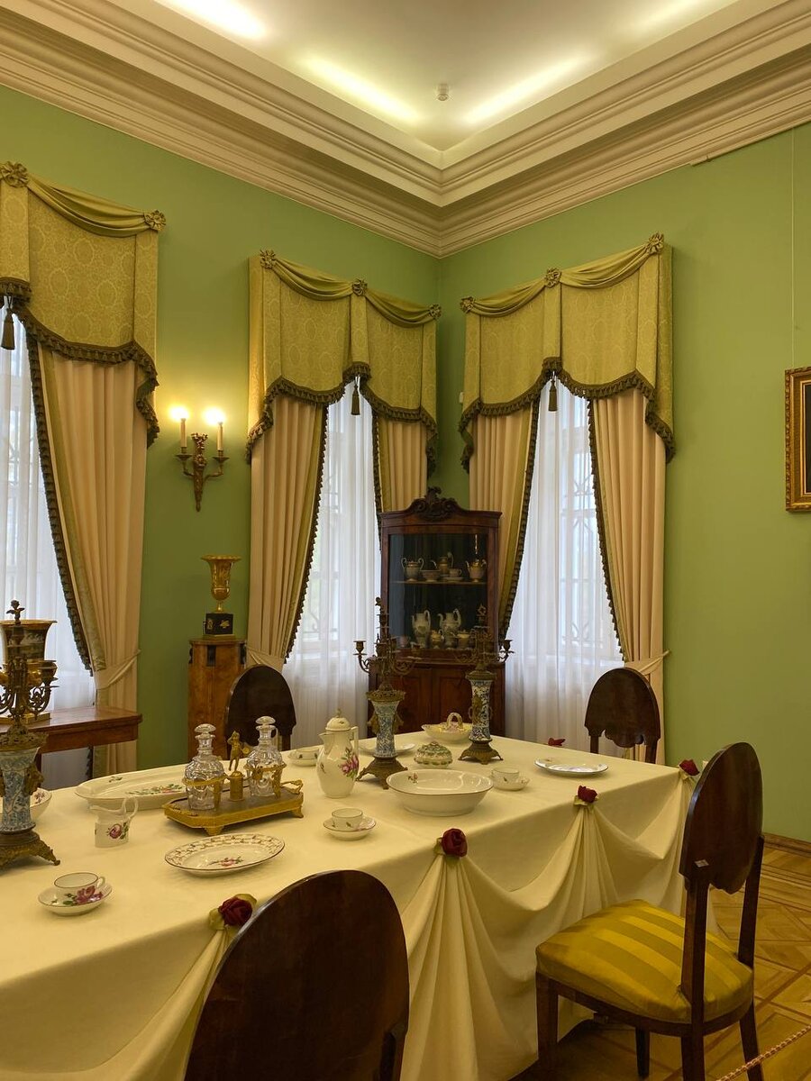 Некоторые считают, что именно здесь, в этом дворце-доме, в Вязёмах на одном из балов знаменитый поэт Александр Сергеевич Пушкин в первый раз увидел Наталью Николаевну Гончарову, свою будущую жену. Как было сказано раннее, что в 1803 году князь Голицын получает усадьбу Вязёмы в личное пользование. В конце 18 века здесь находилась парадная спальня владельца, Николая Михайловича Голицына, который являлся ребенком Михаила Голицына - соратника Петра Первого в Северной войне 1700-1721 года. Кстати, это имя я слышала ещё когда жила в Санкт-Петербурге, он похоронен на Лазаревском кладбище, на территории Александро-Невской лавры. Если вдруг вы будете в Санкт-Петербурге, обязательно посетите этот некрополь. Настоящий музей скульптур. Дамский будуар мне очень понравился, особенно цветовая гамма комнаты. Масонская комната очень интересная, здесь представлены вещи, связанные с масонами. Но я, к сожалению, мало что о них знаю. Понимаю только, что это тайное общество. Вот такая интересная картина