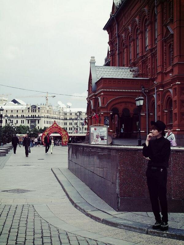 Прекрасные фотографии, Чонгук на фоне Музея Революции и Тэхен с конем.