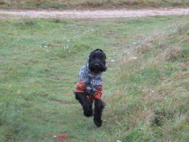 Да, в Тверской области наряду с Домиником, милой Чапой и другими собаками временно обосновалась весьма харАктерная маленькая кнопица - цверга Фаби, годов ей одиннадцать, весу всего 6,5 кг, найдена на улице, по клейму вроде как хозяев пробили, но те в Фаби собаку свою не признали, а никто другой её и не искал. Фаби - мадам весьма бодренькая, дома не хулиганит, ни с кем не конфликтует, очень ласковая и вежливая, этакая воспитанная принцесса. А уж как для тепла и уюта ей костюмов цвержачьих наслали - так ещё и модница великая стала. С приданным.