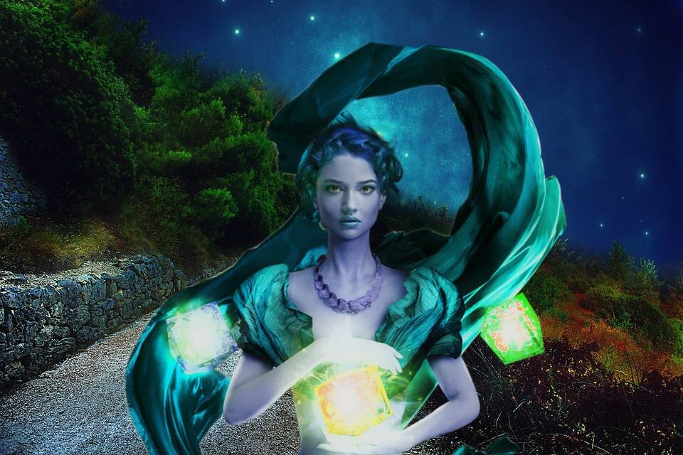 – Что ж, изволь, – согласилась мать. – Наверно ты созрела для этого знания. – Купава мечтательно посмотрела вдаль на серебристый растущий месяц за окном и улыбнулась своим воспоминаниям. – Твой отец был мудрецом. Он ушел от суеты мира. Поселился отшельником в лесной чаще. Построил маленькую хижину на берегу нашего озера. Ничего не имел, только – глиняный кувшин и много книг. Читал их целыми днями. Читал и ночами при лунном свете. Постигал человеческую премудрость. Почти ничего не ел, лишь несколько ягод лесной земляники или болотной брусники в день. Вскоре стал похожим на обтянутый кожей скелет. Но даже не замечал этого. Часами неподвижно сидел на берегу, глядя вдаль, и постигал мудрость земли и неба. Комары до крови искусывали его тело. Но мысли отшельника были далеко. Филин ночами ухал в ветвях дуба, пытаясь отпугнуть непрошеного гостя. Совсем близко выли волки. Искатель мудрости ничего не слышал, погруженный в свои мысли. Тогда я стала каждую ночь выходить к молодому отшельнику из вод Зеленого озера. А я в юности была красавицей не хуже тебя. Долго боролся отшельник с охватившими его чувствами. Вообще перестал есть и пить. Но, наконец, чувства одолели его. Отшельник бросился в стихию страсти с таким же неистовством, с каким прежде бросался в стихию знания. Провел со мной месяц на дне озера, словно в райском саду.