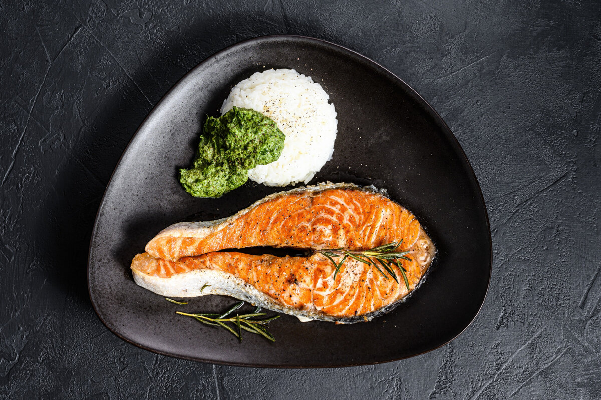 Поджаристый лосось с грибным рисом и лимонно-шалфейным соусом
