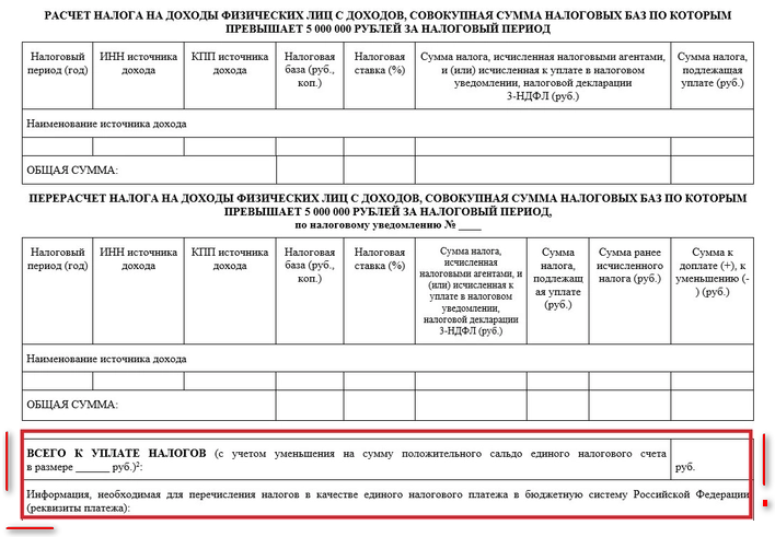 В него включают сумму соответствующего налога к уплате и данные для платежа. То есть банковские реквизиты, УИН, QR-код, штрих-код.