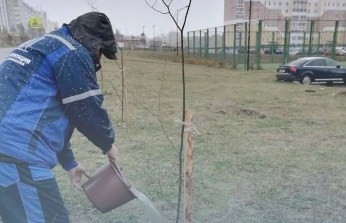 В Зареченском микрорайоне Орла на месте погибших лип посадили новые