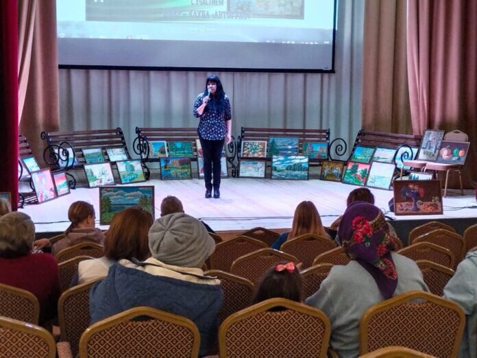 В минувшие выходные, 14 октября, в заболотском сельском Доме культуры состоялось торжественное открытие персональной выставки картин Ульяны Башкировой. Мероприятие прошло при активном участии пиар-клуба «Автограф». На выставке представлено 38 картин – это авторские пейзажи и натюрморты. — Для меня, конечно, это было праздничное событие, радость от которой со мной разделили зрители – жители деревни и мои коллеги по клубу. На выставке я с удовольствием рассказала о своём увлечении живописью, и о том, что уроки живописи я брала у известного людиновского художника Валерия Хованского, — прокомментировала открытие автор выставки Ульяна Башкирова. На открытии выставки, Ульяна Башкирова прочла несколько своих новых авторских стихотворений о Людинове, красоте природы родного края, временах года и патриотизме. В ходе открытия выставки для посетителей был организован концерт членов пиар-клуба «Автограф». Также автор произведений искусств подарила свою картину руководителю Дома культуры Евгении Н