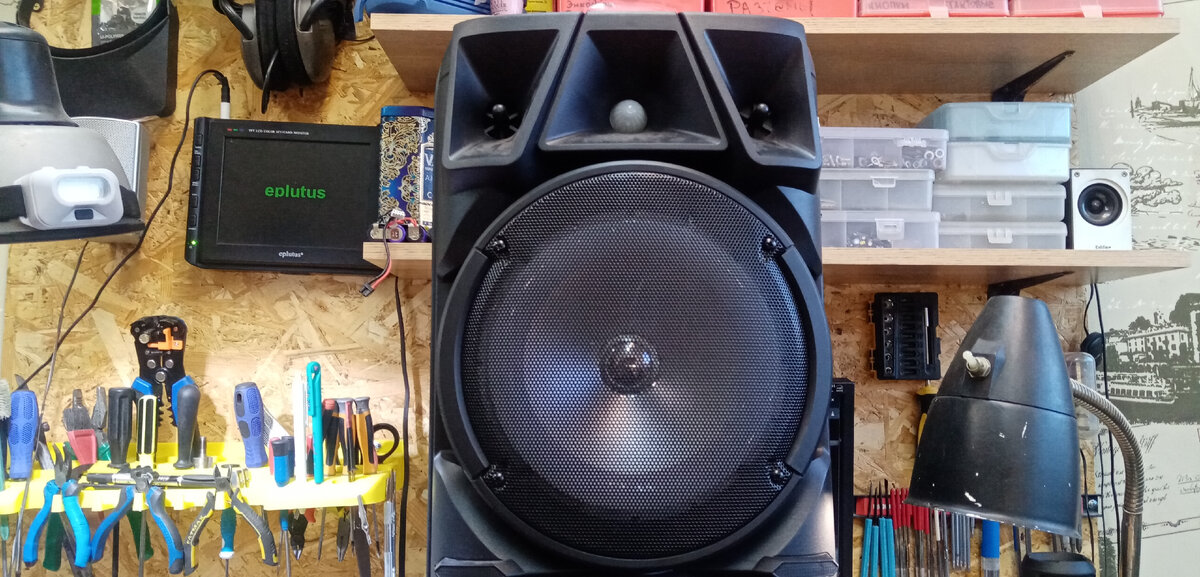 Принесли эту условно портативную колонку с выломанным разъёмом питания. Здесь стоит самый ходовой micro USB. Работа простая. Даже не нужно разбирать всю колонку. Только верхнюю панель открутить. Ну что ж, приступим. Достаём основную плату. Тут все не очень. Разъём выдран с мясом, с дорожками. Ладно, залечим. Такие разъёмы в оренбургских магазинах стоят 50 - 70 рублей. Как бы не дорого, но можно поиметь за эти же деньги чуть больше полезностей. За 50 рублей можно купить модуль зарядки TP4056. Тут вам и разъём, и ещё микросхемка. Да и плату в сборе без разъёма можно успешно использовать при переделке на литий тех же фонариков. Порядок, разъём на месте. Подкинем питание, индикация есть. Собираем колонку, снова подключаем питание с лабораторника. Индикация есть. А вот потребления тока всего 20 мА. Можно сказать, что его нет. Жёваный крот... Разбираем все обратно. Проблема известная. Наверняка пробит контроллер зарядки. Посмотрим на него внимательно... Ага, это же наш добрый друг TP4056.