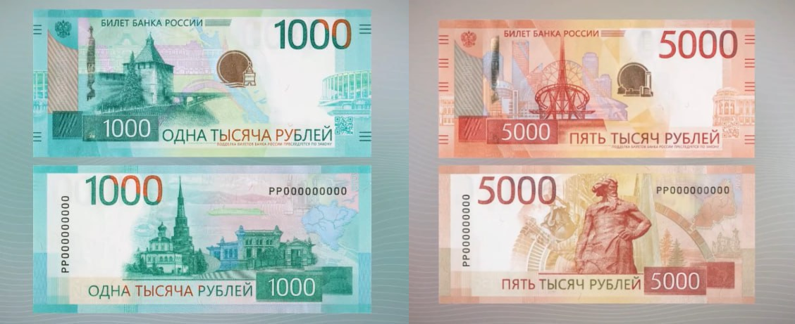 Банк России презентовал обновленные купюры номиналом 1000 и 5000 рублей и ввел их в обращение с 16 октября 2023 года, следует из сообщения регулятора. Отмечается, что обновленные банкноты имеют усиленный защитный комплекс. Купюра номиналом 1000 рублей посвящена Нижнему Новгороду и Приволжскому федеральному округу. «Основное изображение лицевой стороны — Никольская башня Нижегородского Кремля, на оборотной стороне отображены Музей истории государственности татарского народа и Республики Татарстан в Казани, башня Сююмбике на территории Казанского Кремля, Музей археологии и этнографии в Уфе», - говорится в пресс-релизе ЦБ. Банкнота номиналом 5000 рублей посвящена Екатеринбургу и Уральскому федеральному округу. «Основное изображение лицевой стороны — стела «Европа-Азия», на оборотной стороне представлены памятник «Сказ об Урале» в Челябинске, стела «66-параллель» (Полярный круг) в Салехарде», - сообщил Банк России. Кроме этого, на новых банкнотах будет размещен QR-код, ведущий на страницу